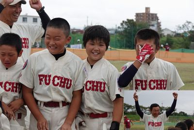 12/28日に千葉ロッテマリーンズの菅野剛士選手が、1/13日に楽天ゴールデンイーグルス茂木栄五郎選手と埼玉西武ライオンズの山野辺翔選手がグランドに来てくれました。3人とも武蔵府中リトルリーグのマイナーから育っていった選手です。今年も活躍を期待します。 |  7月からリトルリーグも対外試合が解禁になった。その初戦、キャプテン比田が放った打球は、低い弾道で、左中間フェンスを越えていった。練習では、柵越えも珍しくもないのだが、試合では初のホームランだ。これから始まる、マイナー最後の大会では大暴れして欲しい。 |  守備では、どこでもこなせるユーティリティプレーヤー羽太。打撃の方も、最近、遠くへ飛ばせるようになったが、バントでも相手チームを翻弄させることができる。ホームランも打てる、バントならいつでもできる、そんな選手に育って欲しい。 |